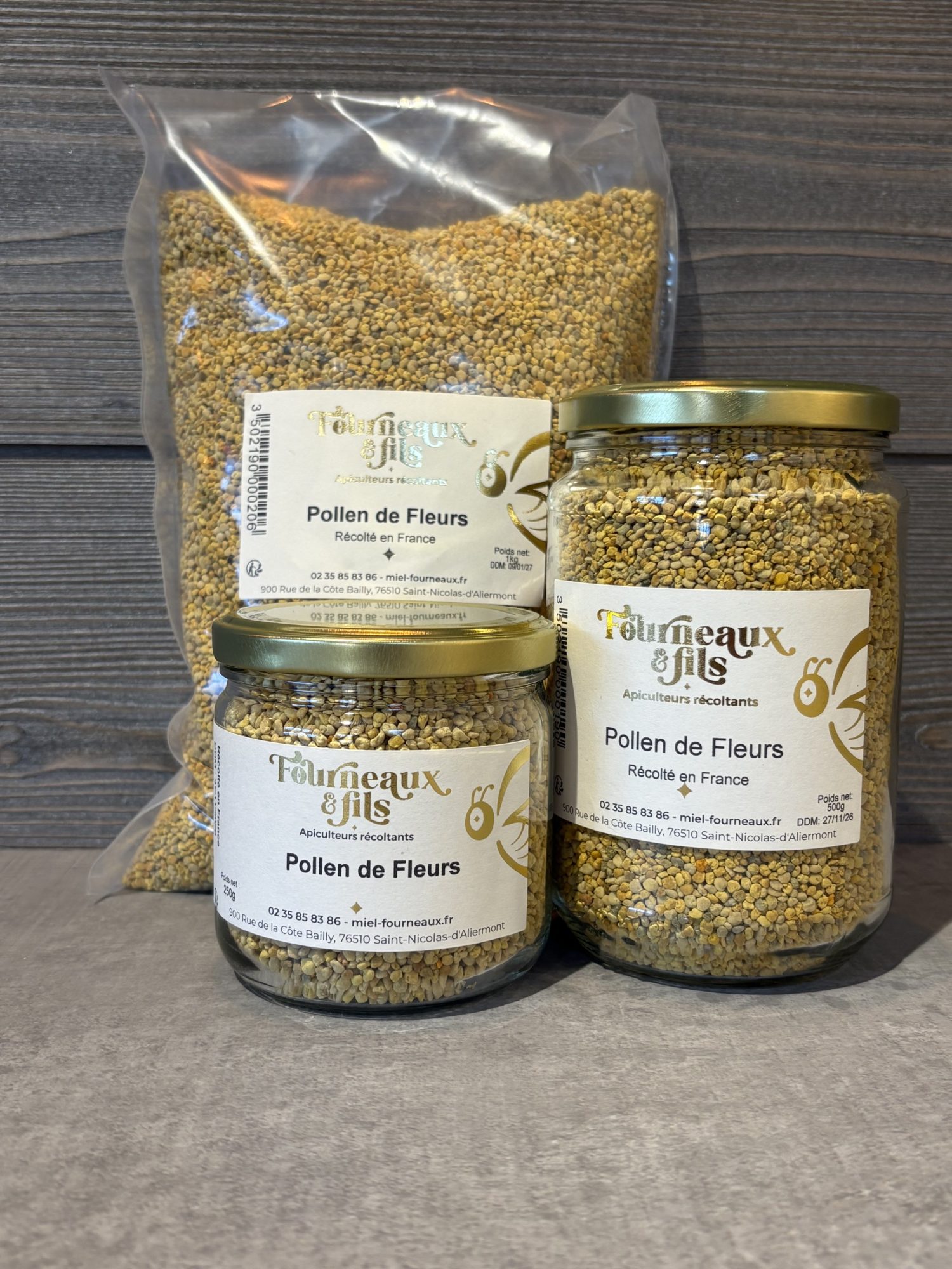 Le pollen sec se présent le plus souvent sous forme de pelotes naturelles de couleurs variées en pots à conserver toujours impérativement dans un endroit sec.