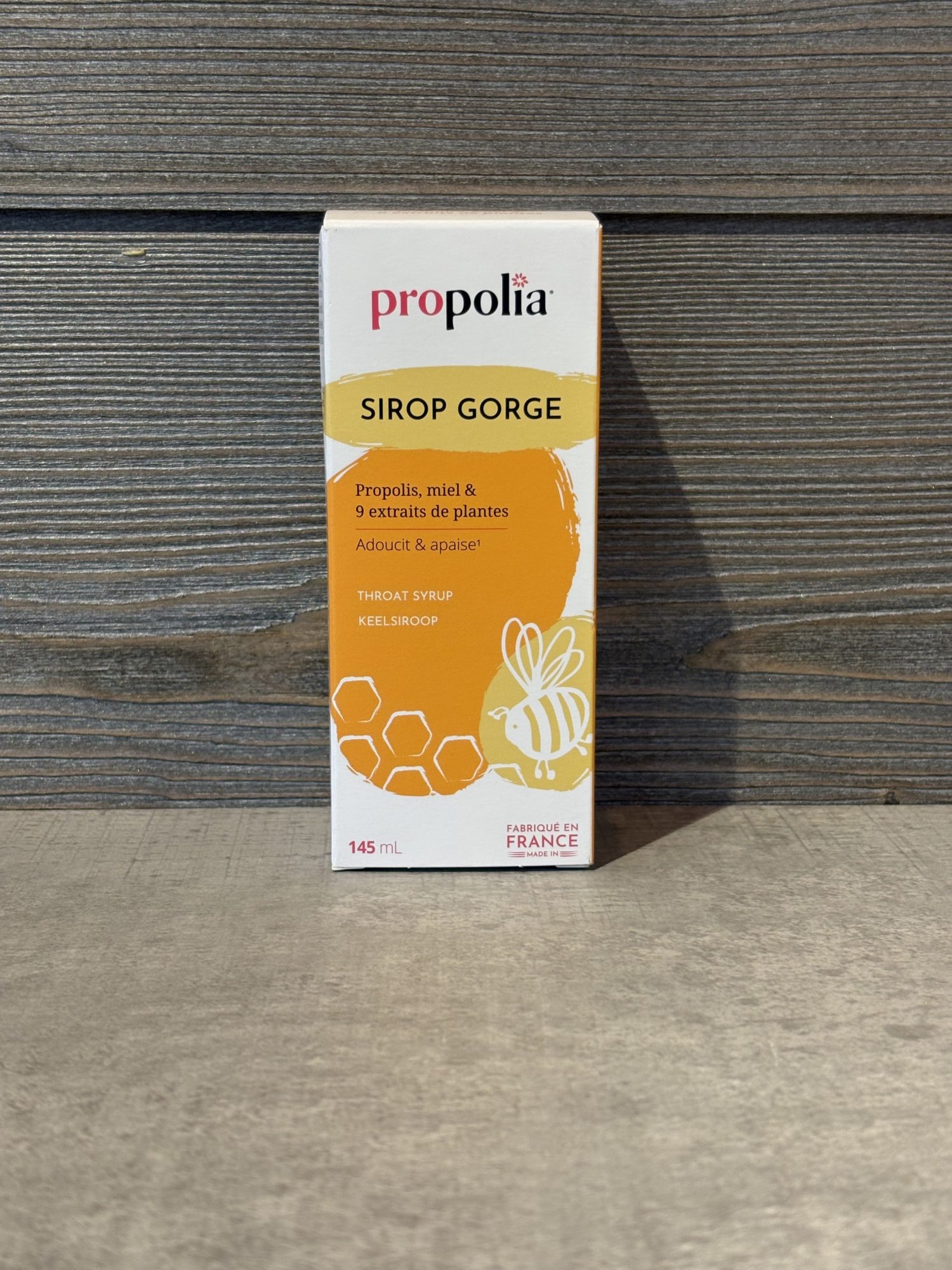 La formule traditionnelle du Sirop pour la Gorge miel propolis citron, de Propolia, allie tous les atouts des produits de la Ruche (Miel, Propolis) aux huiles essentielles et extraits de plantes tels que le Thym, l’Hysope et la Mauve, apaisants pour la gorge.